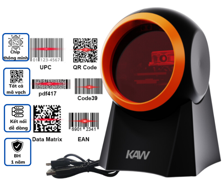 Máy quét mã vạch đa tia để bàn KAW, công nghệ CMOS, quét QR, 2D – Giao tận nơi tại Đà Lạt
